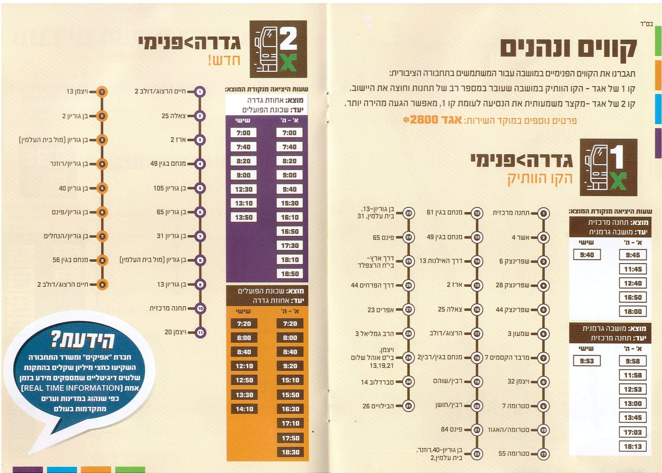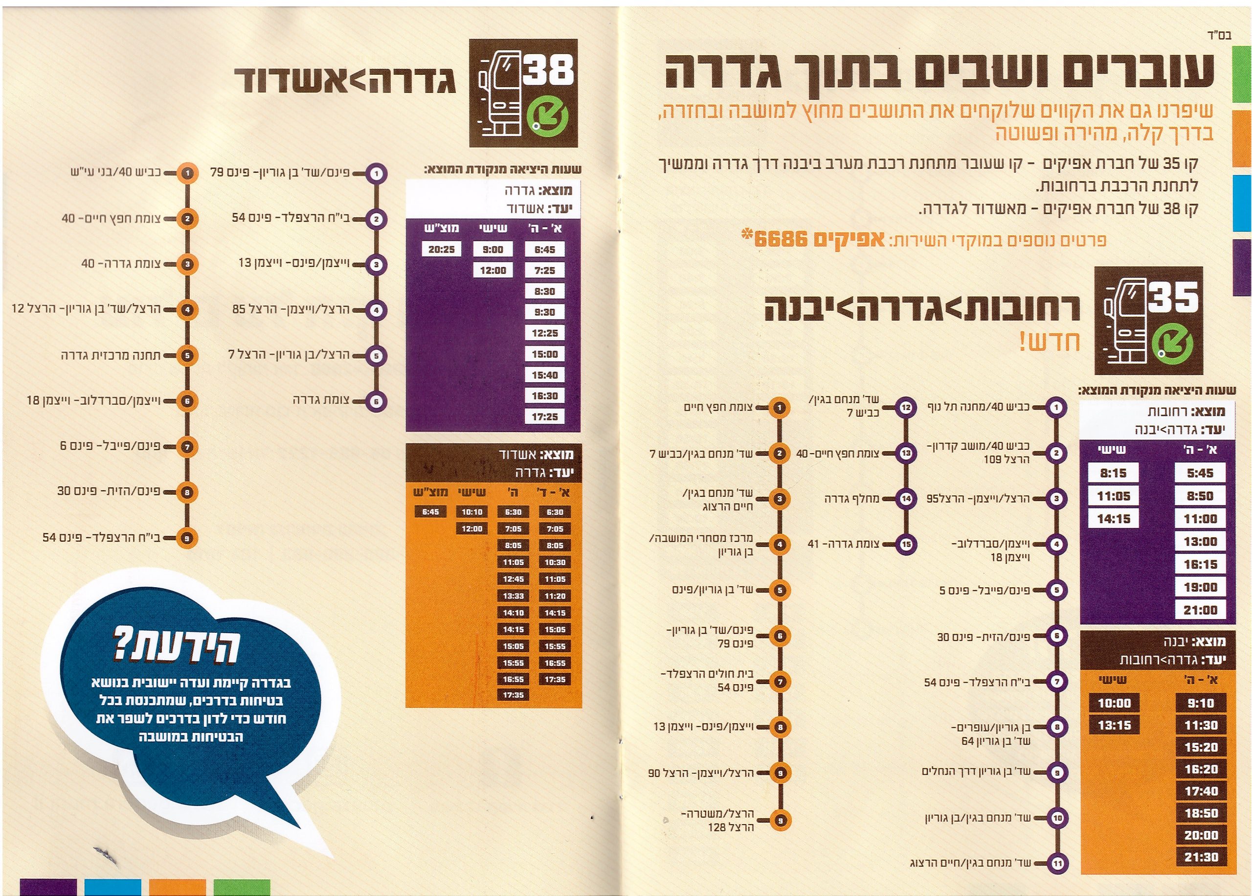 Internal transport in the Gedera Home » Transportation Transportation in the fence, getting to know the navigation methods in the fence and thus getting anywhere simply and comfortably Gedera bus route map Internal Gedera bus route map Transport routes Car Rent Yoni Car Motors Habiluim 5, Gedera, 050-6666060 Taxis Gabi Taxis – 054-6600888 Taxi Hanan Taxi – 052-2908805